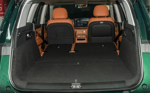 在装载能力方面,这款车很好地解决了许多物品存放的问题。此外,车内还配备了冰箱、空调和后排娱乐屏等舒适性配置。空调系统采用了三区智能调温设计,后排还配备了独立空调和出风口,能够保证每位乘客都能享受到适宜的温度。车载冰箱不仅支持冷藏和冷冻功能,还具备加热食物的能力,非常适合有孩子的家庭用户,可以为宝宝随时提供合适的食品。后排娱乐屏尺寸达到了15.6英寸,能够满足大部分乘客的娱乐需求。再加上一套拥有21个高保真扬声器的音响系统,为乘坐者打造出极为舒适的娱乐体验。