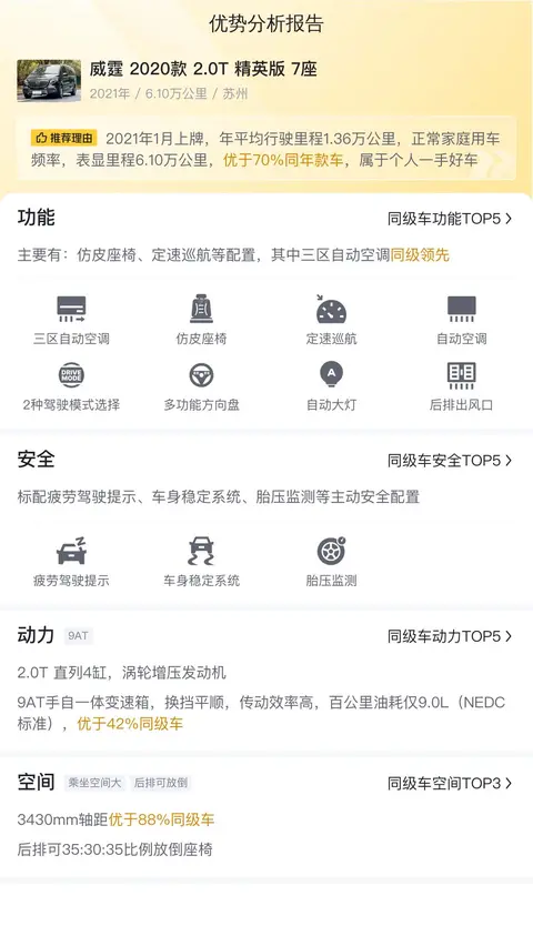 综上所述的新车含税价、用车成本、市场行情、优势分析、同款比价等数据仅供参考。在配置部分,因为二手车非标品,车辆可能会存在配置改装的情况,具体车况信息需要线下结合车辆实际情况进行综合参考。