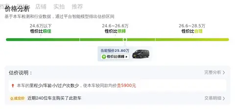 接下来,我们来看看这台二手奔驰威霆的市场行情和用车成本。根据懂车帝的数据,该车目前的市场行情价为25.89万 - 31.72万,而本车的售价为25.8万,价格相对较低。在用车成本方面,这台威霆的年均综合用车成本约为1.5万元,当然具体金额还需根据车主的实际使用情况而定。