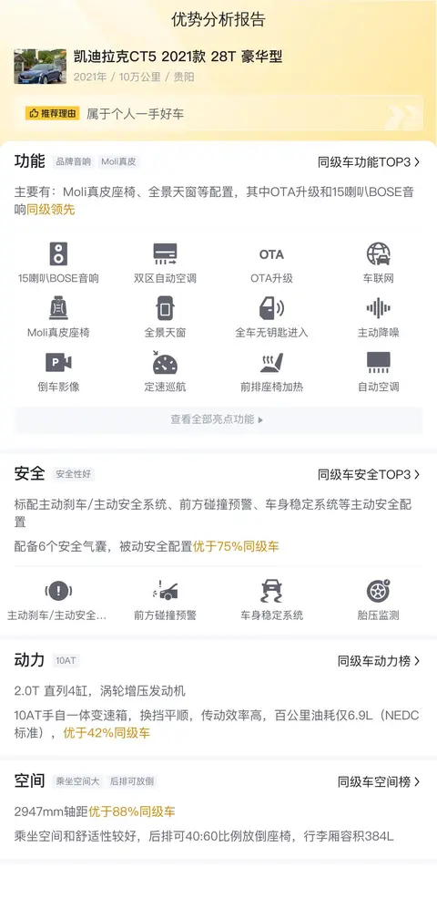 综上所述的新车含税价、用车成本、市场行情、优势分析、同款比价等数据仅供参考。在配置部分,因为二手车非标品,车辆可能会存在配置改装的情况,具体车况信息需要线下结合车辆实际情况进行综合参考。