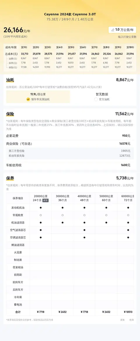 关于用车成本,根据我们的估算,这款车型的年均综合用车成本大约在2.6万元左右。需要注意的是,实际费用支出可能会因使用频率、环境条件等因素而有所变动。