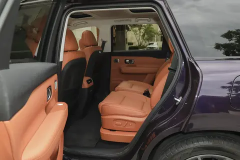 第二排座椅可以前后滑动,靠背角度也能调,灵活性不错;同时座椅新增横向滑轨,中央通道最大宽度为190毫米,靠背最大仰角从145度提升至155度。第二排独立空调、小桌板等细节配置,则体现出对家庭用户更贴心。第三排支持电动放倒,放平后后备箱容积能从209L扩展到1022L,日常家用完全够用,装大件行李也没压力。考量动力表现平顺,满载时也能保持稳定的行驶质感。