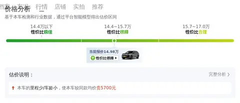 根据大数据分析,目前这款车型的二手车市场价格在14.65万至17.57万之间。具体的价格因车辆的车龄、里程、保养情况等因素而有所不同。本车的售价14.98万,从车龄、里程、保养、过户四个维度综合评估,价格合理。关于用车成本方面,我们将通过列举一些具体数据来为您详细解析。首先,根据数据显示,这款车型的平均油耗为7.5L/100km。按照当前油价计算,每行驶100公里大约需要60元左右的油费。假设您每年行驶2万公里,那么每年的油费支出约为4800元。接下来是保险费用。通常情况下,机动车交强险加上商业保险(包括第三者责任险和车辆损失险)的年均保费大约在4547元左右。最后是保养费用。由于这款车型的保养周期较长,一般情况下每年的保养费用大约在2072元左右。综上所述,这款车型的年均用车成本大约在13419元左右。当然,这个数字还会根据您的实际用车情况和个人驾驶习惯有所变动。