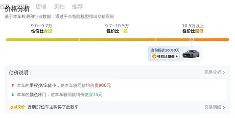 在评估二手车价格时,车龄、里程、过户次数及颜色等车况信息皆为关键考量因素。对于这辆领克03 2023款 2.0TD DCT劲Plus而言,其车龄少于均值0.1年,里程亦少于均值1.2万公里,且过户次数少于均值0.1次,唯有颜色一项,深灰色相较平均价格略降75元。综观各项指标,该车在车况方面表现优异,有望以相对合理的价格成交。