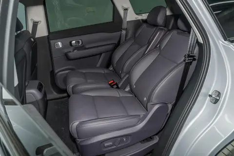 三排空间经过优化,采用后翻式电驱设计,将电机后移,增加了腿部和脚部空间。身高 1.8 米左右的乘客乘坐时,腿部可自然伸展,头部空间也较为充裕,与轴距 2950 毫米左右车型的三排空间表现相近。三排座椅进行了升级,头部和腿部空间各增加 20 毫米,进出更为便利。座椅采用七层结构设计,表面使用婴儿级亲肤材质,中间和底层结构设计合理,长时间乘坐不易产生疲劳感。