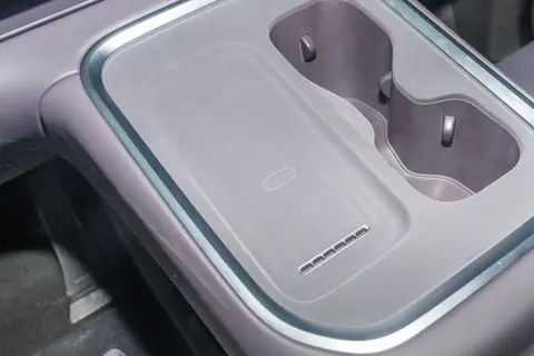 副驾驶侧设有无线充电区域和杯架,无线充电功率升级至 50W,带有散热风扇,适配主流品牌手机,充电速度较快。顶配车型扶手箱内有 8.1 升小冰箱,可制冷或保温,提升使用便利性。
