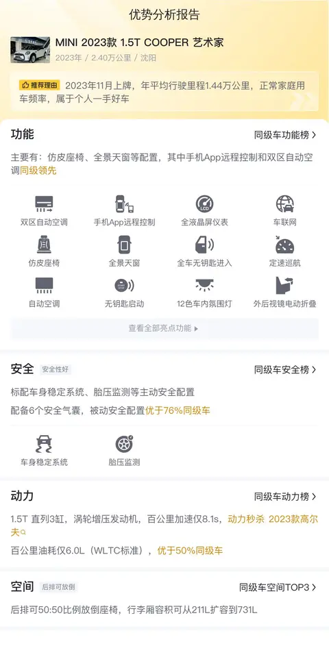 在众多二手车中,为什么说这款MINI是个不错的选择?接下来,我们将从安全性、功能性、舒适性和经济性四个维度,对这款车进行深入分析,让你更清晰地感受并认识这款车的核心竞争力。