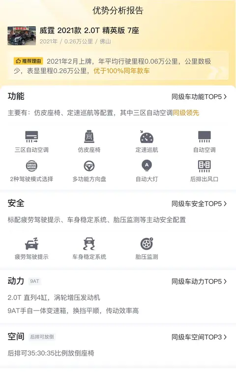 综上所述的新车含税价、用车成本、市场行情、优势分析、同款比价等数据仅供参考。在配置部分,因为二手车非标品,车辆可能会存在配置改装的情况,具体车况信息需要线下结合车辆实际情况进行综合参考。