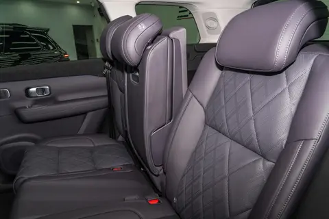 咱们先来看看六座版的空间。它采用的是 2+2+2 的布局,第二排是独立座椅,还支持横向侧滑功能,这样中间的过道就有 190mm 宽,进出第三排特别方便,一点都不狼狈。第二排座椅还能一键放倒,后备厢空间一下子就能拓展到 1663L,要是搬家或者出去露营,装再多东西都没问题。而且第二排座椅还新增了纳帕真皮座椅,功能也更多了,靠背能放得更平,坐起来别提多舒服了。第三排的坐垫高度有 350mm,比多数竞品高 50mm,就算是 1.78 米的成年人坐进去,膝部也能有一拳的余量,头部空间也有一定保证,再也不用担心第三排是 “小板凳” 了。第三排座椅靠背还内嵌钢板,在追尾事故中能防止行李侵入,安全性大大提升。