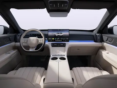 捷途山海L7 PLUS车内座舱提供双色设计,搭载D型多功能方向盘和悬浮式仪表屏,15.6英寸中控屏支持左右10度偏转,匹配TOUR OS 3.0智慧AI座舱。此外得益于怀挡设计,捷途山海L7 PLUS中央通道下层预留了开放式储物空间;上层功能区设置有双杯架、手机无线充电面板等。