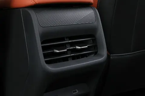 内饰配色很懂年轻人,霞光橙配色在中控台和座椅边缘加入橙色缝线,搭配金属质感的饰条,活力感十足;暗夜灰则用哑光磨砂材质营造高级感,适合喜欢低调的用户。比较实用的是怀挡设计带来的变化,取消旋钮换挡后,中央岛台形成了贯通式储物空间,前排乘客可以从主驾轻松递东西到副驾。下层储物格能放下13寸MacBook Pro加充电器,上层的风冷无线快充区特别贴心——夏天充电时风扇会自动启动,手机再也不会因为过热断充。