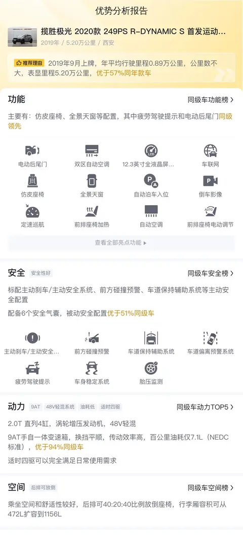 综上所述的新车含税价、用车成本、市场行情、优势分析、同款比价等数据仅供参考。在配置部分,因为二手车非标品,车辆可能会存在配置改装的情况,具体车况信息需要线下结合车辆实际情况进行综合参考。