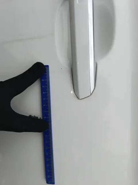 该零部件,划痕(S<10cm²),非事故造成,受尖锐物体划伤造成痕迹,不影响车辆正常使用,对美观有一定影响