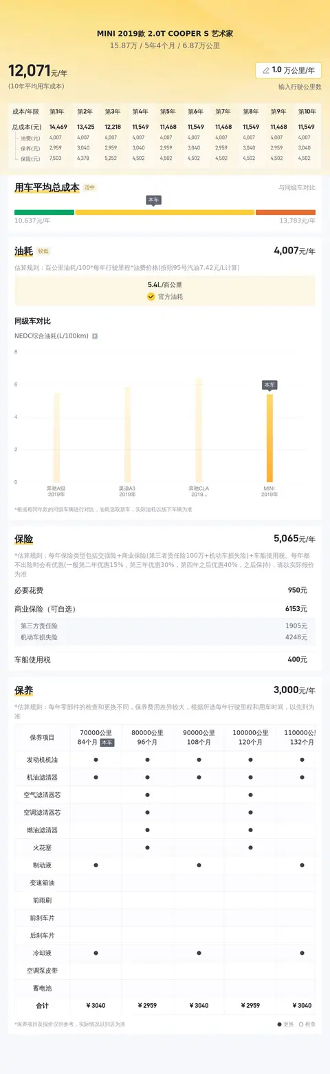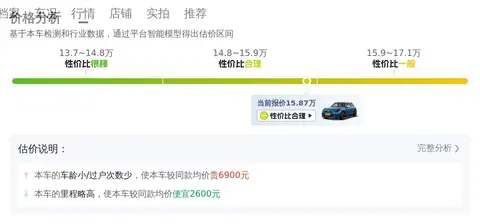 目前的二手车市场,这款车的价格在14.02-17.77万之间,具体的价格要看车辆的上牌时间、行驶里程、过户次数等不同的车况因素而定。这辆车的售价15.87万,价格基本符合市场行情,在合理的波动范围内。关于用车成本方面,我们估算这辆车的用车成本是12509元/年,这项花销是跟车主的实际用车场景和使用强度有直接变化的。
