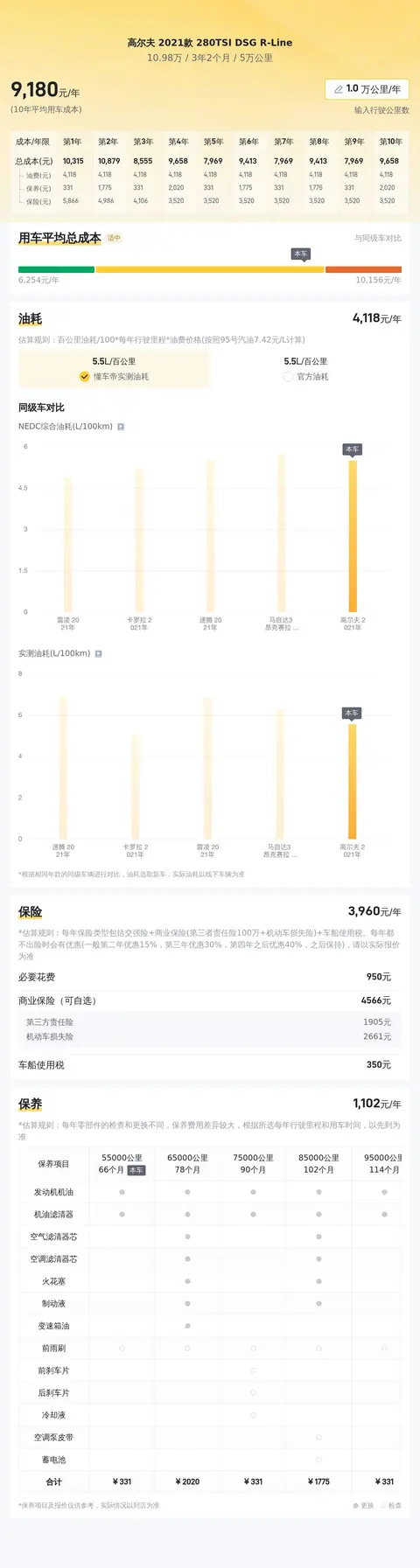 用车成本方面,根据估算,该车型的年均综合用车成本约为9,185元,这一数字在同级别车型中处于适中水平。然而,实际用车成本可能会因个人驾驶习惯、地区差异等因素而有所不同。