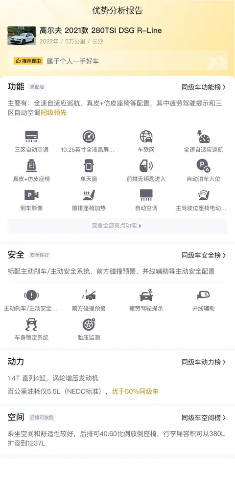总体而言,这款高尔夫是一款集运动与实用于一体的紧凑型轿车。它不仅拥有出色的驾驶性能,还具备了良好的乘坐舒适性和安全性。无论是日常通勤还是周末出游,它都能为您提供愉悦的驾乘体验。