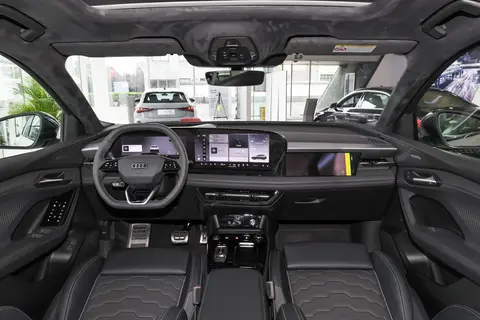 轮毂与车身颜色:全系标配21英寸Audi Sport动感轮毂,前窄后宽的轮胎组合(前255/45 R21,后285/40 R21)强化了操控稳定性。车身颜色提供7种选择:青城绿灵感源自四川青城山的自然纹理,流霞紫随光线变化呈现渐变效果,磁曜灰融合金属冷峻与宝石光泽,猎风灰以哑光质感突出运动感,阿斯卡里蓝致敬赛车文化,茉莉白与传奇黑则延续经典豪华基调。这些配色不仅覆盖了从低调到张扬的审美需求,更通过“中国风命名”拉近与本土用户的情感连接。