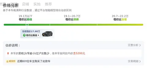 过户次数:该车未曾有过过户记录,而同类车型的平均过户次数为0.8次。作为一手车源,该车在价格上相较同类车型有1100元的优势。