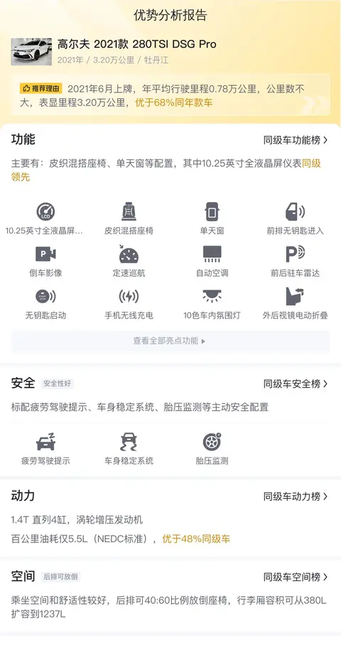 综上所述的新车含税价、用车成本、市场行情、优势分析、同款比价等数据仅供参考。在配置部分,因为二手车非标品,车辆可能会存在配置改装的情况,具体车况信息需要线下结合车辆实际情况进行综合参考。