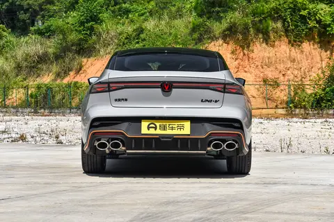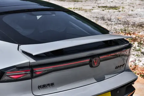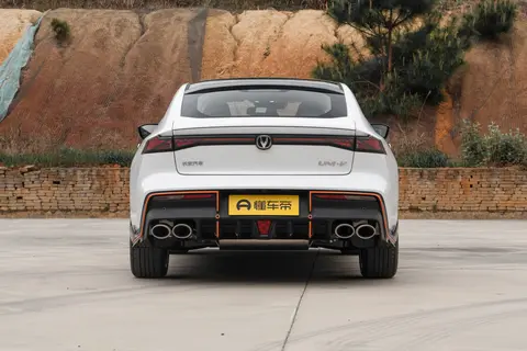 在车尾方面,新款长安UNI-V配备发光车标、贯穿式尾灯、电动后扰流板以及后扩散器等配置,并对尾灯内部LED灯组、后包围处的反光条和后雾灯样式进行调整。在排气方面,实拍车型则采用双边共四出的排气布局,与2025款长安UNI-V高能运动版保持一致。