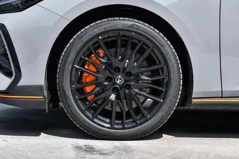 此外,实拍车型还配备了橙色刹车卡钳、打孔式刹车盘、19英寸多辐式轮辋以及邓禄普SP SPORT MAXX 050轮胎(轮胎规格为235/40 R19),此前该型号轮胎也曾在2021款一汽-大众高尔夫GTI车轮上配备过。根据配置不同,新款长安UNI-V还提供18英寸轮辋可选。根据官方信息显示,18英寸轮辋将搭配德国马牌定制开发的PCC高性能静音轮胎。