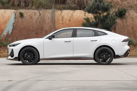 新款长安UNI-V延续了溜背式轿跑的车身造型,但是前悬相比2025款车型更长,前铲、侧裙和后包围处带有贯穿全车的橙色饰条来营造运动感。新车取消了弹出式隐藏门把手设计,改用半隐藏式车门把手。在车身尺寸方面,新款长安UNI-V的长宽高分别为4740/1838/1430毫米,轴距为2750毫米,车长相比2025款车型增加20-45毫米不等,其余数据保持一致。