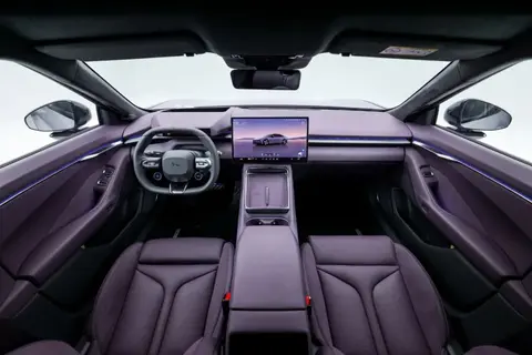底盘方面,采用了全铝前双叉臂+后五连杆悬架,结合轻量化锻造轮辋设计与簧下质量优化,还配备双腔空气悬架与智能可变阻尼减震器,兼备灵动性和舒适性。整车采用的中置电驱布局架构,轴间质量占整车质量的81%,重心高度440mm。新车实现3.7秒零百加速,最高车速可达230km/h。