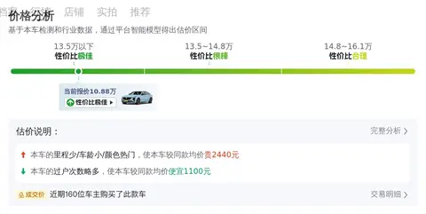 根据懂车帝的数据,目前这款车型的二手车价格区间为10.88万至13.29万元。具体的价格因车辆的车况、里程、车龄等因素而异。在不考虑车况等差异的情况下,本车的性价比较高。