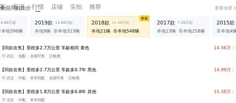 除了车况部分,相信很多车友都比较关心这辆车的价格行情怎么样,那么我们先来看看这辆车在当前市场的大致价格区间在15.18万至18.68万之间,当然具体的价格会受到车辆状况等因素的影响而有所不同。拿这台车来说,它的里程少于均值,车龄少于均值,过户次数少于均值,外观有轻微瑕疵,内饰有轻微瑕疵,所以价格较便宜。