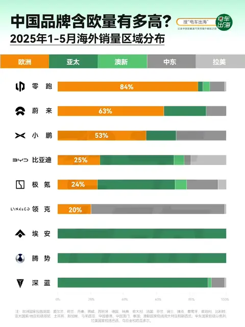 2025年,零跑在出海方面成绩显著。1-6月,出口量达20375台,位居中国新势力之首,海外销量84%来自欧洲本地消费者。截至7月底,累计销量达271793台,同比增长149% ,单月交付量在7月更是达到50129台,连续5个月位居中国新势力车企月销榜首。零跑能在新势力出海中超越小鹏,成为第一,主要得益于几个关键因素。在技术层面,零跑坚持全域自研,70%零部件自研,核心零部件自制率超65% ,像自研的三电、智驾、座舱系统,降低了成本,提升了产品竞争力,让产品性价比远超同类。