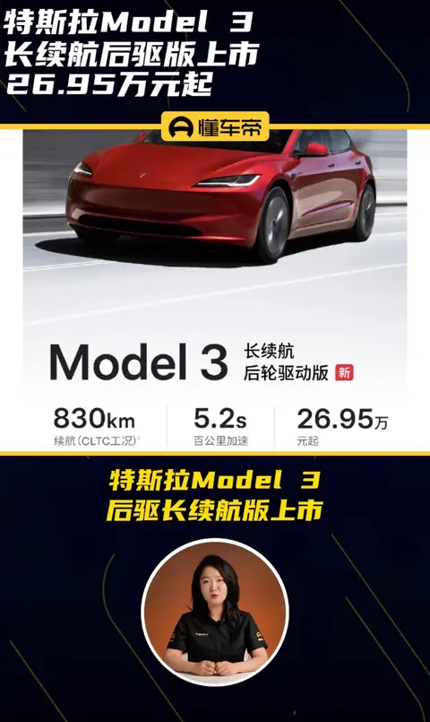 近日,特斯拉正式推出2025款Model 3(图片|配置|询价),这款纯电中型车以全新姿态亮相,共涵盖后轮驱动版、长续航后轮驱动版、长续航全轮驱动版以及高性能全轮驱动版四款车型,起售价为23.55万元 ,为消费者带来了更多元化的选择。