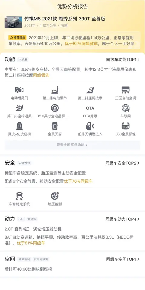 综上所述的新车含税价、用车成本、市场行情、优势分析、同款比价等数据仅供参考。在配置部分,因为二手车非标品,车辆可能会存在配置改装的情况,具体车况信息需要线下结合车辆实际情况进行综合参考。