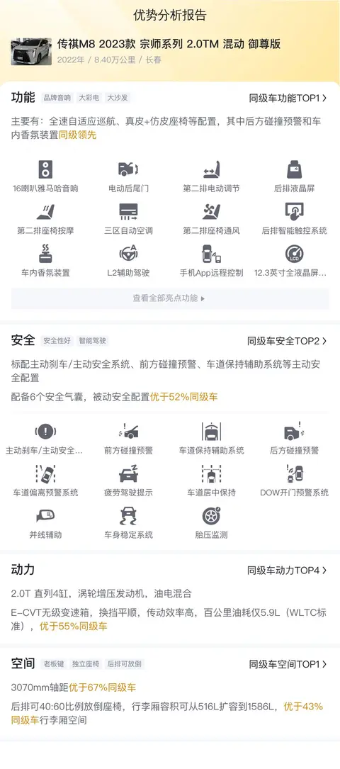 对于那些希望购买二手传祺M8 2023款宗师系列2.0TM混动御尊版的消费者来说,他们通常会关注车辆的价格、车况、里程数、过户次数等因素。今天,我们就来分析一款二手传祺M8,看看它的具体情况如何。