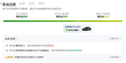 根据大数据预估显示,这辆车的售价区间应为18.72万到23.22万,而该车当前售价为18.3万,相较于市场价,属于比较便宜的了,而且这款车属于热门车型,市场欢迎度很高,保值率也高,同级车平均油耗为8.2L/百公里,而它的油耗仅为6.8L/百公里,再加上它曾经过两次过户,通常来说,过户次数越多,车价会相对更低一些。