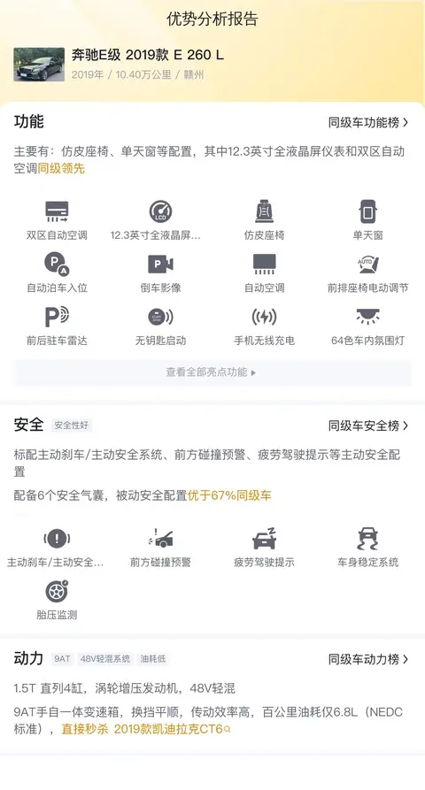 在与奥迪A6L、宝马5系等主要竞争对手的对比中,这辆奔驰E级 2019款 E 260 L在舒适性和科技感方面表现出色。其座椅舒适度、内饰材质以及智能互联功能的丰富程度,均为其带来了不错的竞争优势。然而,在动力响应和操控乐趣方面,它可能不如宝马5系那样强调运动特性;相比之下,奥迪A6L可能在空间利用和科技配置上提出更为激进的设计方案。尽管如此,E级车凭借其均衡的性能表现和奔驰品牌的豪华形象,依旧吸引了众多追求舒适与品质的消费者。