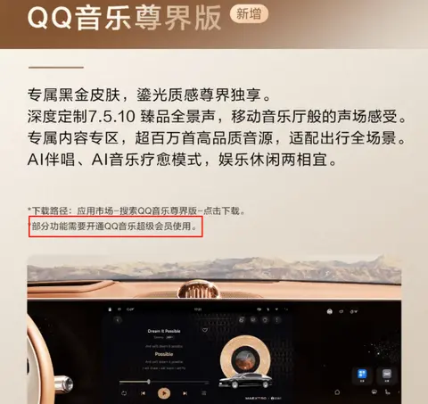 文下小字标注了操作方法,和一项关键的温馨提示:此功能需选购隐私巨幕套件+后排智能交互系统。