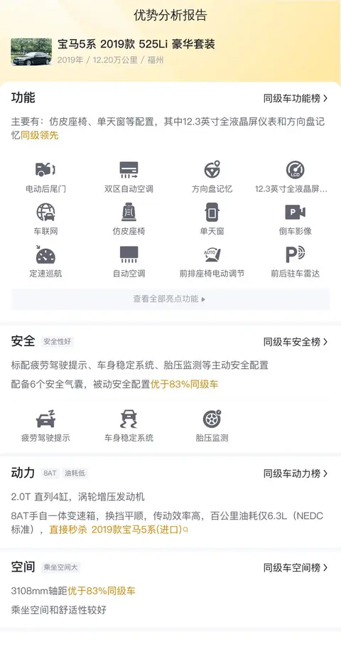 综上所述的新车含税价、用车成本、市场行情、优势分析、同款比价等数据仅供参考。在配置部分,因为二手车非标品,车辆可能会存在配置改装的情况,具体车况信息需要线下结合车辆实际情况进行综合参考。