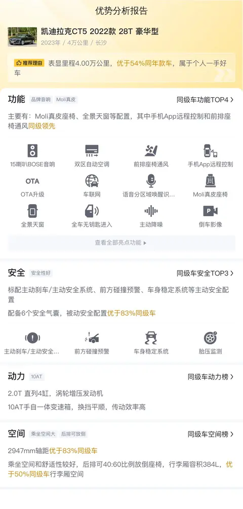 综上所述的新车含税价、用车成本、市场行情、优势分析、同款比价等数据仅供参考。在配置部分,因为二手车非标品,车辆可能会存在配置改装的情况,具体车况信息需要线下结合车辆实际情况进行综合参考。