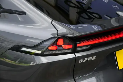 轮毂设计同样别具匠心,提供了19英寸运动轮毂和飓风轮毂两种选择。前者以机械风格展现力量感,融入深蓝品牌图形元素;后者采用半封闭造型平衡美观与风阻表现,五辐式双色气旋设计在行驶中创造出独特的光影效果。细节之处,无框车门和隐藏式电动门把手不仅提升了整车的高级感,也对降低风阻有所贡献。