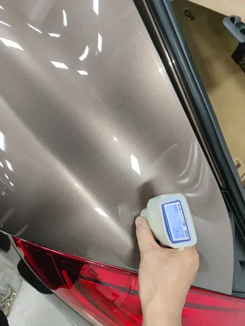 在外观的检测中,这辆车在左后翼子板处、右后翼子板处都有轻微瑕疵,经过喷漆修复后,不影响正常使用。