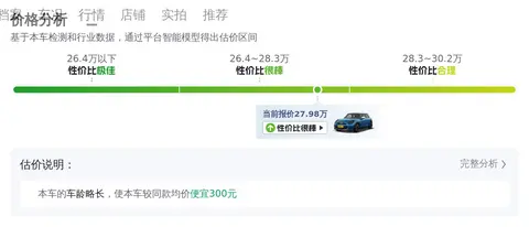 在用车成本部分,我们根据大数据预估,这辆车的10年平均用车成本大概是每年1.2万元左右,这个花销是包含了油费、保险费和保养费。