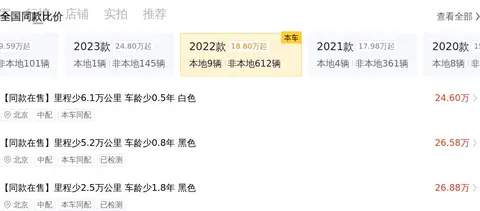 按惯例,我们要看看这款车的市场行情如何。根据经验,影响一辆车最终售价的因素有很多,比如使用年限、行驶里程、车辆保养状态等,实际车况才是影响成交价格的决定性要素。