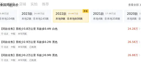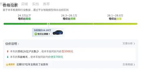 根据懂车帝的数据,目前这款车型的二手车市场价在24.02万至29.32万之间,具体售价受车辆状况等因素影响。关于本车的售价,可以说是相当有吸引力的。目前市场价24.28万,开三年多便宜一半,可见其保值率还是不错的。按照目前的车况,这款车在性价比方面具有明显优势。是一款值得考虑的车型。