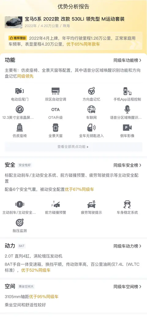 综上所述的新车含税价、用车成本、市场行情、优势分析、同款比价等数据仅供参考。在配置部分,因为二手车非标品,车辆可能会存在配置改装的情况,具体车况信息需要线下结合车辆实际情况进行综合参考。