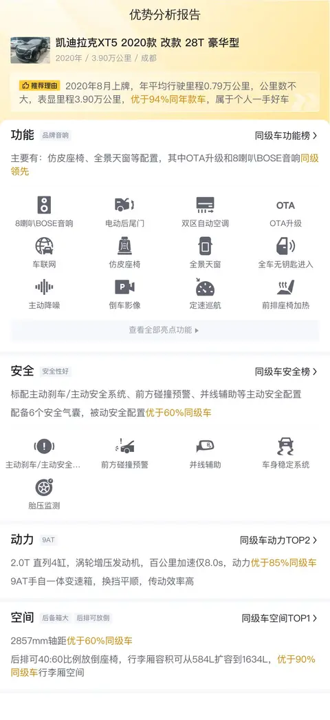 综上所述的新车含税价、用车成本、市场行情、优势分析、同款比价等数据仅供参考。在配置部分,因为二手车非标品,车辆可能会存在配置改装的情况,具体车况信息需要线下结合车辆实际情况进行综合参考。