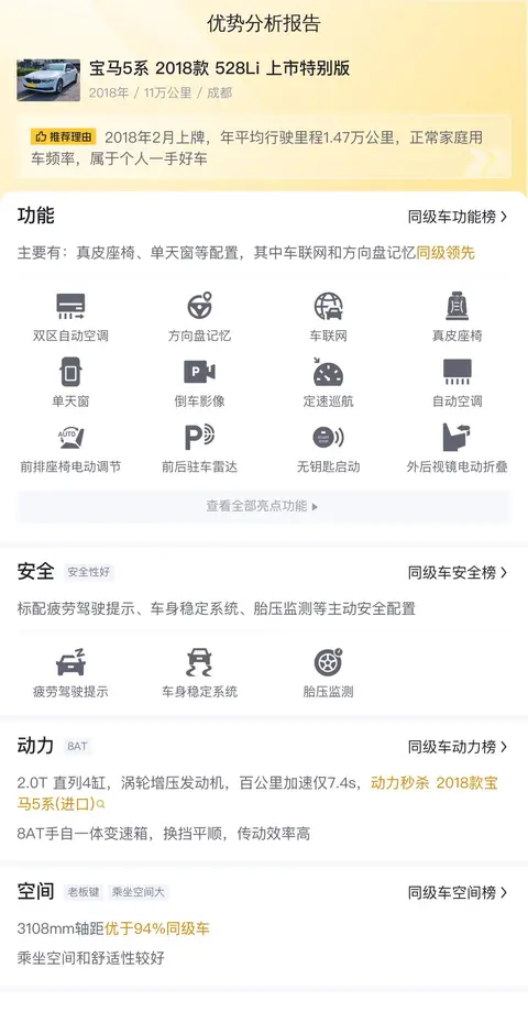 综上所述的新车含税价、用车成本、市场行情、优势分析、同款比价等数据仅供参考。在配置部分,因为二手车非标品,车辆可能会存在配置改装的情况,具体车况信息需要线下结合车辆实际情况进行综合参考。