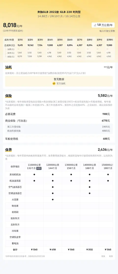 这款车百公里油耗为7.9升(按照WLTC标准测量),平均每年保险费用约4207元,保养费用约4380元。总体而言,这款车型的使用成本在同级别车型中处于适中的水平。选择哪款车,还是要根据您自己的实际需求和预算来定。如果您追求豪华品牌和品质,又希望价格合理,这款车可以考虑一下。
