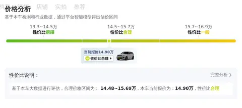 根据大数据预估显示,这辆车的市场价格在13.62万至16.88万之间。有趣的是,这辆车的售价刚好位于这个区间内,表明它的定价相当合理。至于用车成本方面,根据估算,这辆车的年均综合用车成本约为2.1万元左右。这项费用涵盖了油费、保险费以及保养费等日常开支,再次强调一下,具体费用还是要根据车子的实际使用情况而定哦~