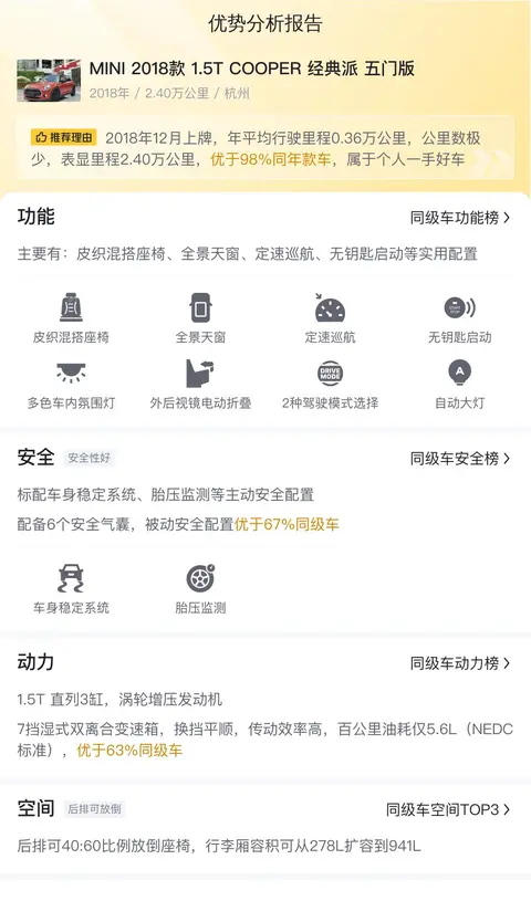 车况如此良好的二手MINI,在市场上可是挺吃香的。根据大数据分析,它的售价在10.28万左右,这价格在二手市场上算是挺合理的,毕竟它的车况这么好,大家都知道,好车自然要好价嘛!