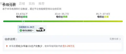 在二手车市场上,它的市场行情价格是30.62万-36.77万,而它的报价则是31.98万,价格上有一定优势,同时保值率也高。